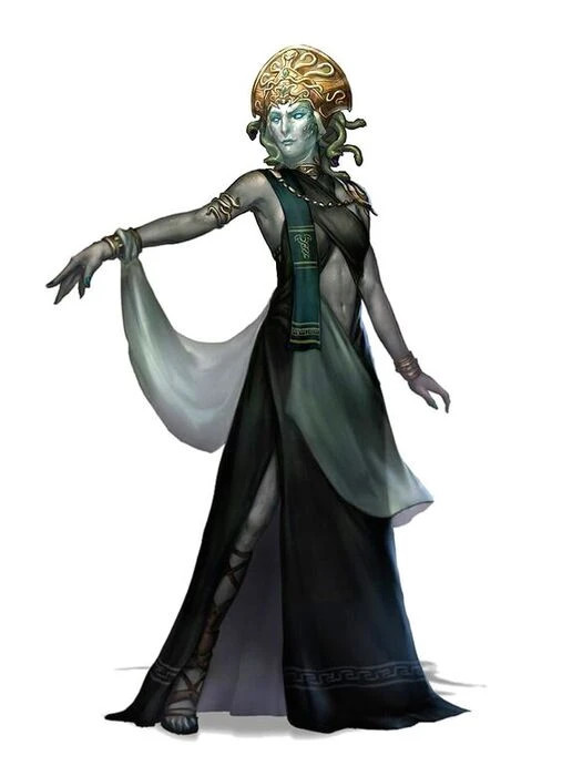 A Medusa um dia foi uma bela mulher, amaldiçoada pelo orgulho de uma deusa, teve suas madeixas substituída por serpentes peçonhentas, além de possuir olhos amaldiçoados, que transformam em estátuas aqueles que encararem seus olhos. Sua beleza ainda permanece, agora distorcida por serpentes e fadada à transformar em pedra qualquer um de seus admiradores.