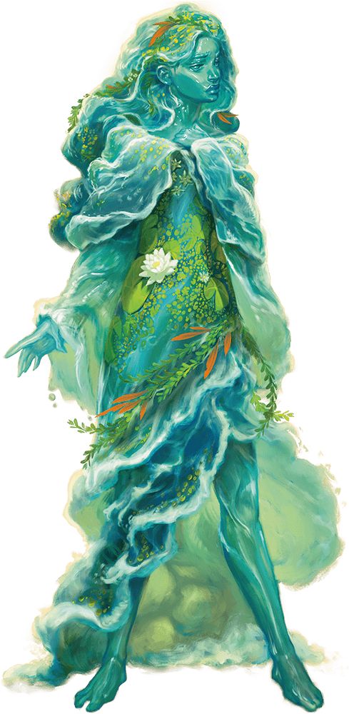 - Cura Hídrica: A náiade pode usar o domínio da sua água para curar um aliado em 15 HP, tratando feridas leves e estancando sangramentos.
