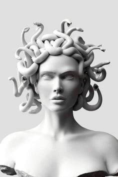 Enquanto os antigos artistas gregos, ao pintar vasos e gravar relevos, imaginavam a Medusa e suas irmãs como tendo nascido com uma forma monstruosa, os escultores e pintores do século V a.C. passaram a visualizá-la como sendo bela, ao mesmo tempo que aterrorizante. Numa versão posterior do mito da Medusa, relatada pelo poeta romano Ovídio, Medusa foi originalmente uma bela donzela, que trabalhava como sacerdotisa no templo de Atenas, 'desejada por muitos pretendentes mortais e imortais. Sua beleza era tão grande que passou a acreditar que era mais bela que a deusa Atena e a se vangloriar por isso.