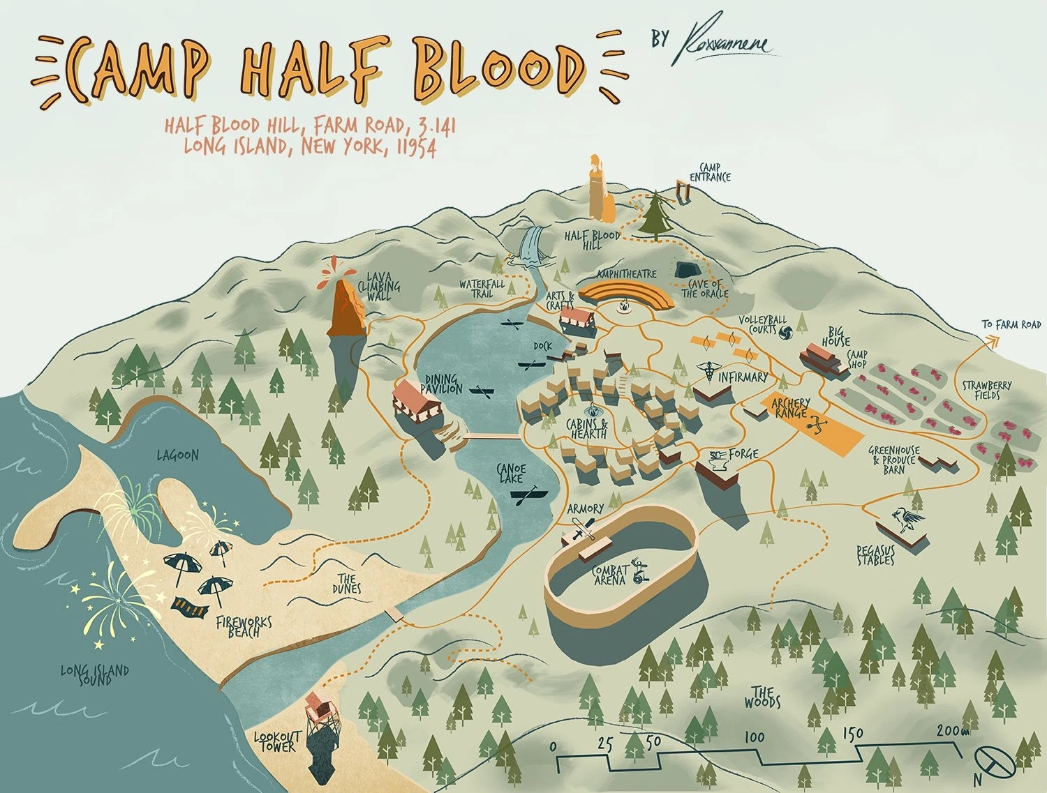 Um dos últimos refúgios para semideuses, o Acampamento Meio-Sangue conta com uma série de estruturas para preparar e guiar os novos semideuses em sua jornada. Aqui você encontra um pouco sobre cada lugar do acampamento.